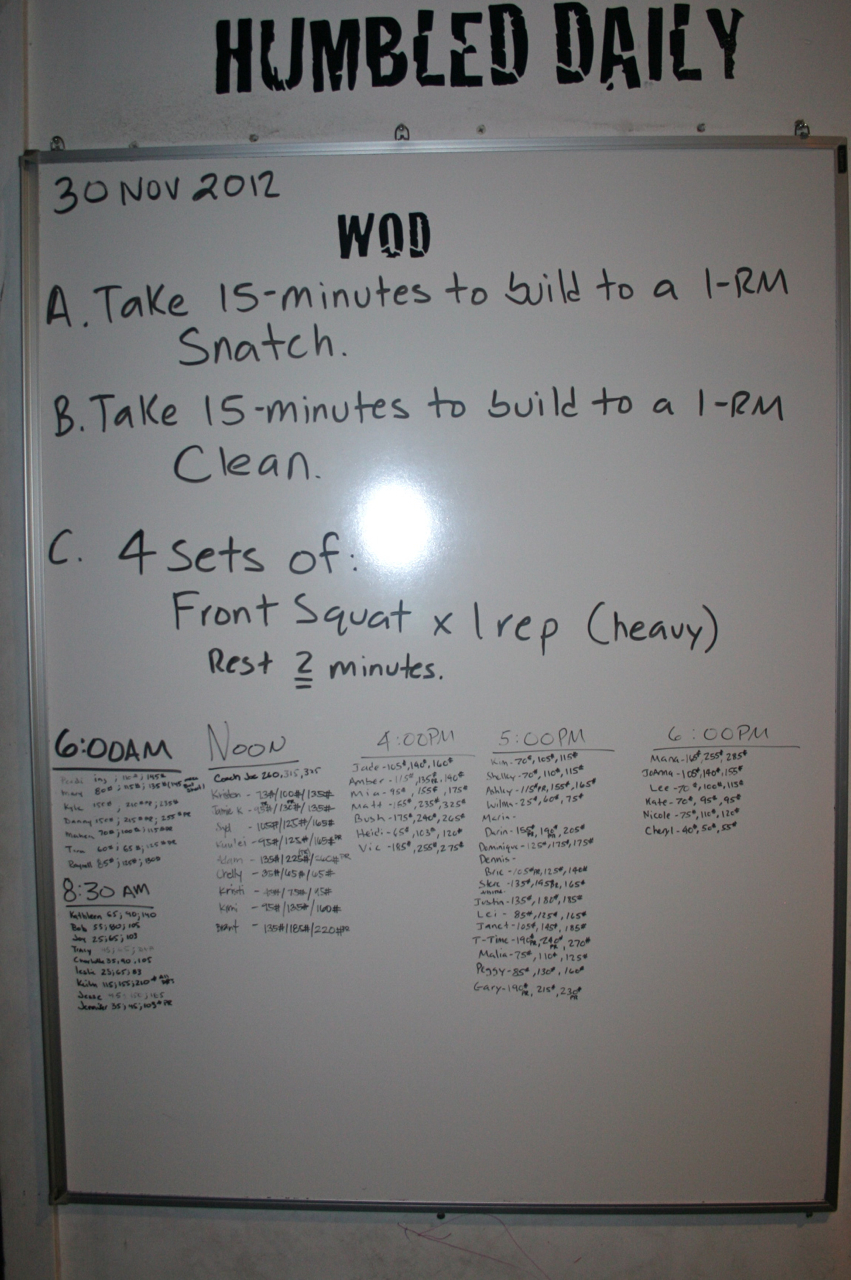 Saturday's WOD Board: